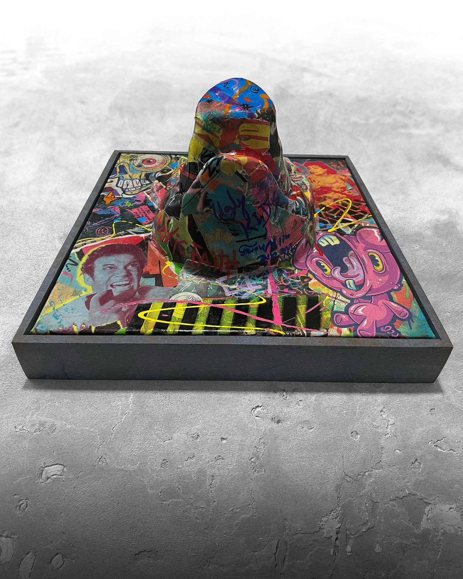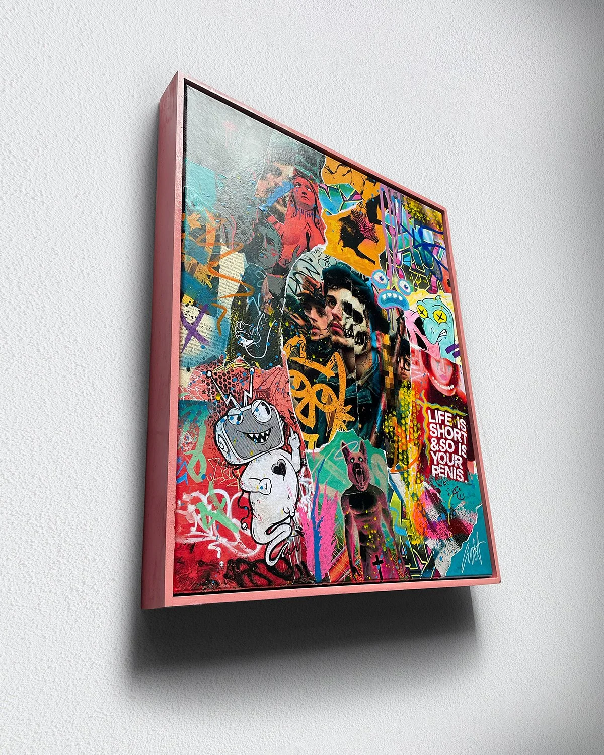 BON CHAT ~ SHÁTT. 42cmW x 52cmH, framed. Mixed media on canvas.