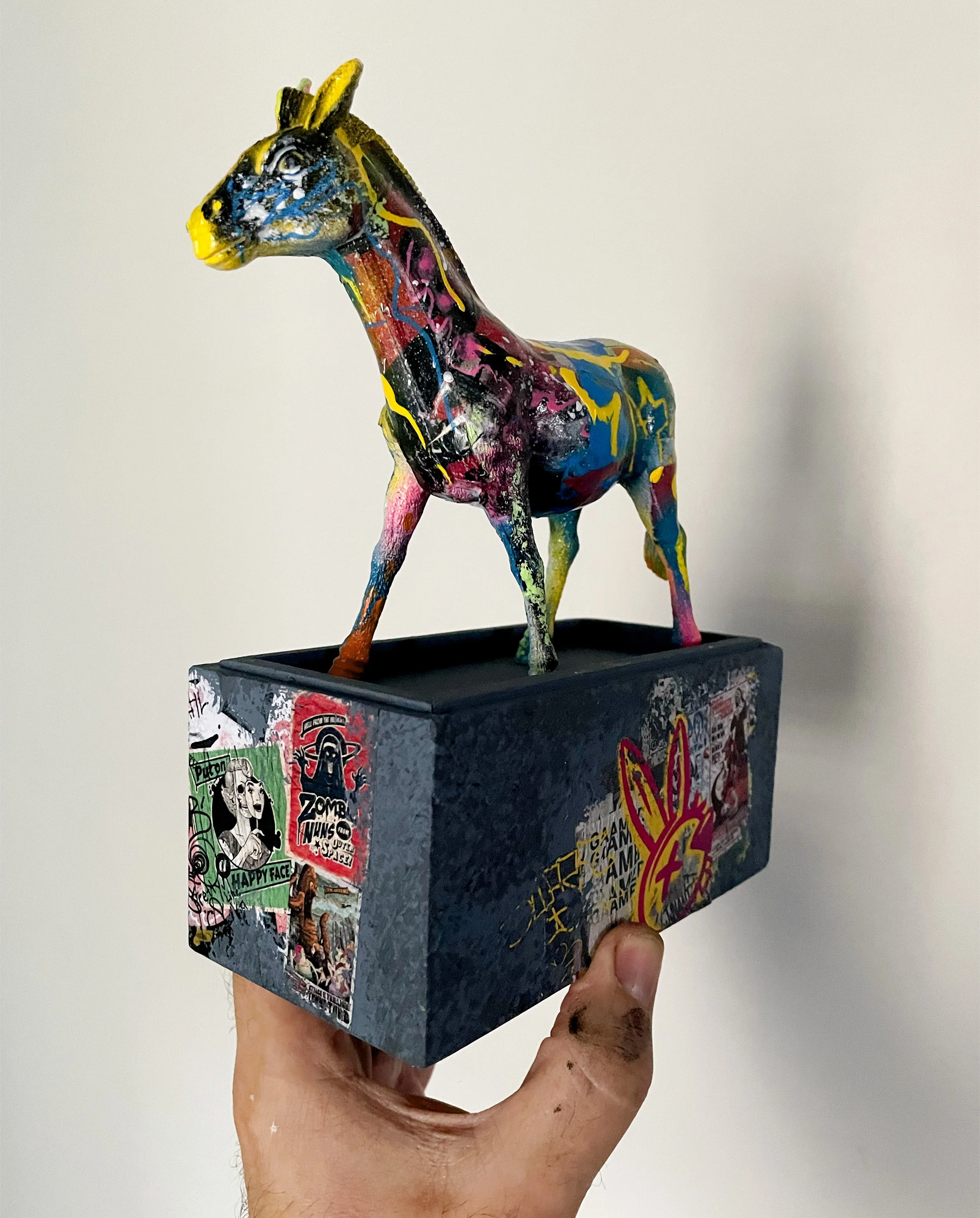 Spray paint and Posca pens on ceramic. SOLD.
